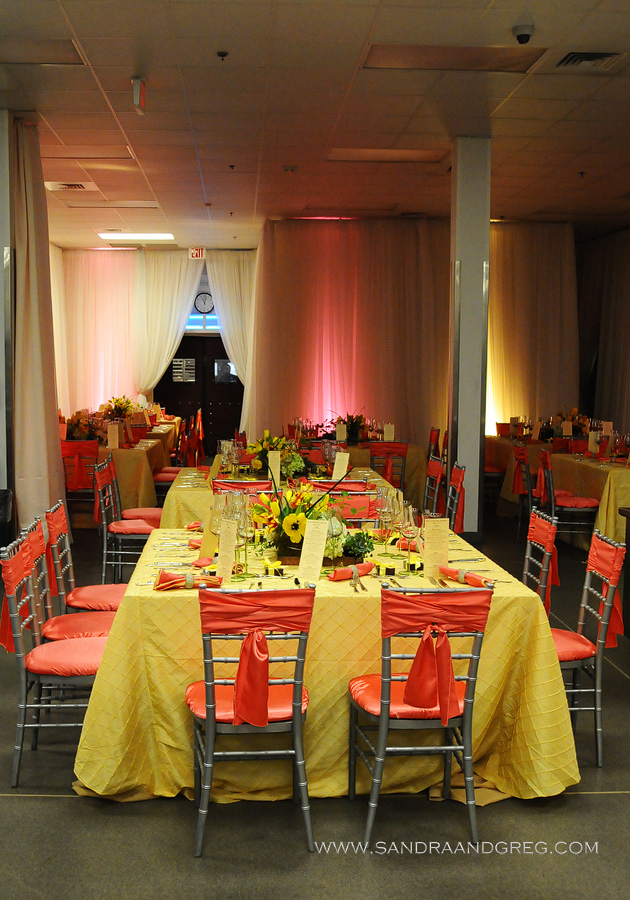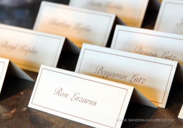 We created an elegant suite of place cards, menus and tags for gifts all on rich pearlized card stock with rich chocolate print.Event Drapery defined the space with an organdy and satin design. Greg and Sandra Scott of Picture This! captured the whole event.