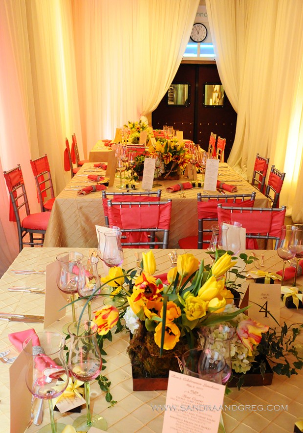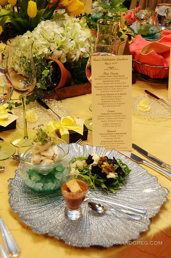 We were honored to provide “papered wonders” for Ron Lazarus, owner of the award winning Affairs to Remember. Our friend, William Fogler or Wm Events helped to design and plan a spectacular Mother’s day luncheon held at the Affairs facility. A festive spring time yellow palette paired with coral bertani silk accented by silver set the tone. Lush gardenesque centerpieces of Strawberry plants, Flaming Parrot & Peonis Tulips were the focal of every table designed by Wm Events. Luxe china including the show stopping Starburst chargers and Tulip crystal glassware from Classic Party Rentals were key to the design. Decadent chocolates from Julia Baker Confections were personalized with a note, that we designed, from Ron as guest favors.