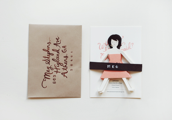We are excited to team up with our fellow StudioWed Atlanta stationer, Luxe Expressions, for an afternoon of fun creating DIY Bridesmaid Invitations. We thought it would be great to continue with the Paper Doll theme for this Sunday’s Inspired Bride event at StudioWed.